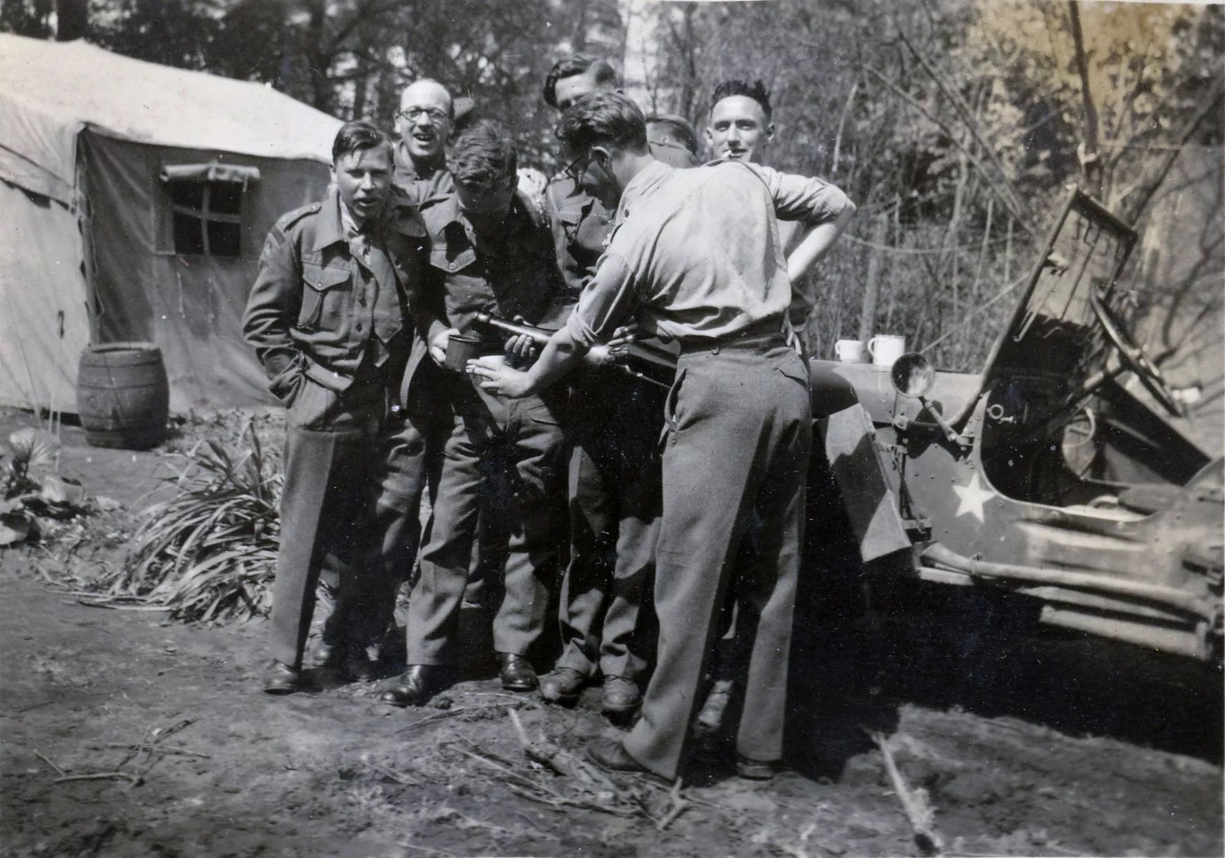 Lieutenant Holborow, also called “Dicky” can be seen in a series of photos taken by Sergeant Thomas William Davey who was also with 720 Company Royal Engineers during the campaign in Northwest Europe.