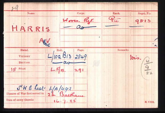 A WW1 veteran he served as Private number 9813, enlisting 25 Aug 1916 in Worcestershire Regiment. He was discharged 22 June 1918. He had been gassed and buried alive for 3 days in the Dardenelles, and the ship carrying him home was torpedoed. He was, for a while in St Dunstans Hospital in London as he was temporarily blinded.