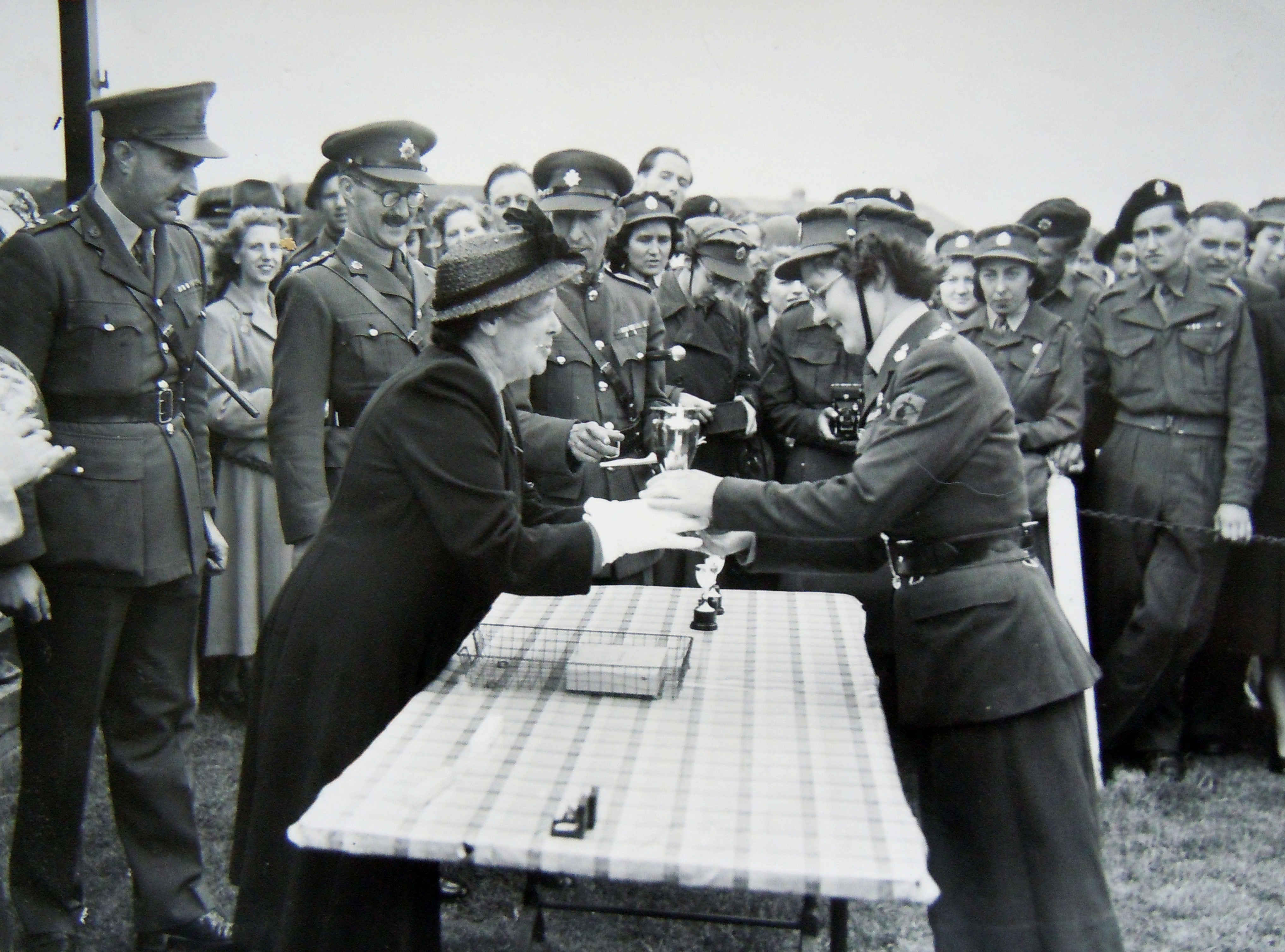 Women had served in the Auxiliary Territorial Service on an emergency engagement until 1949. On the 1 February the Women’s service became a part of the Regular & Territorial Army with the title Women’s Royal Army Corps. On the 3rd May 1955 Captain Barbara Culleton WRAC was awarded the Territorial Decoration for serving her Country. Brigadier E.R. Caffyn pinned on her medal and whispered “my wife told me to be careful where you pin it !” which is why the photo has her smiling.