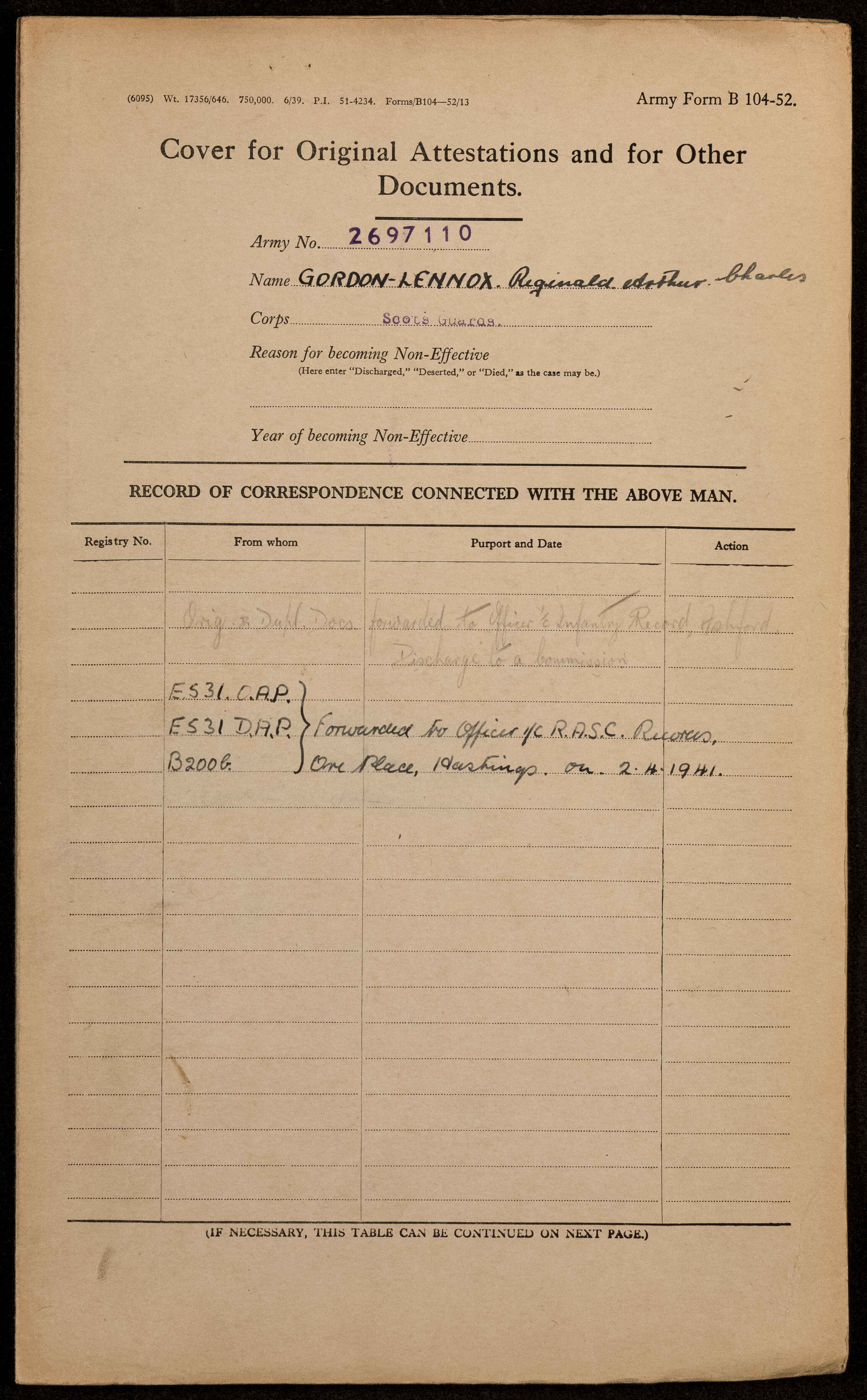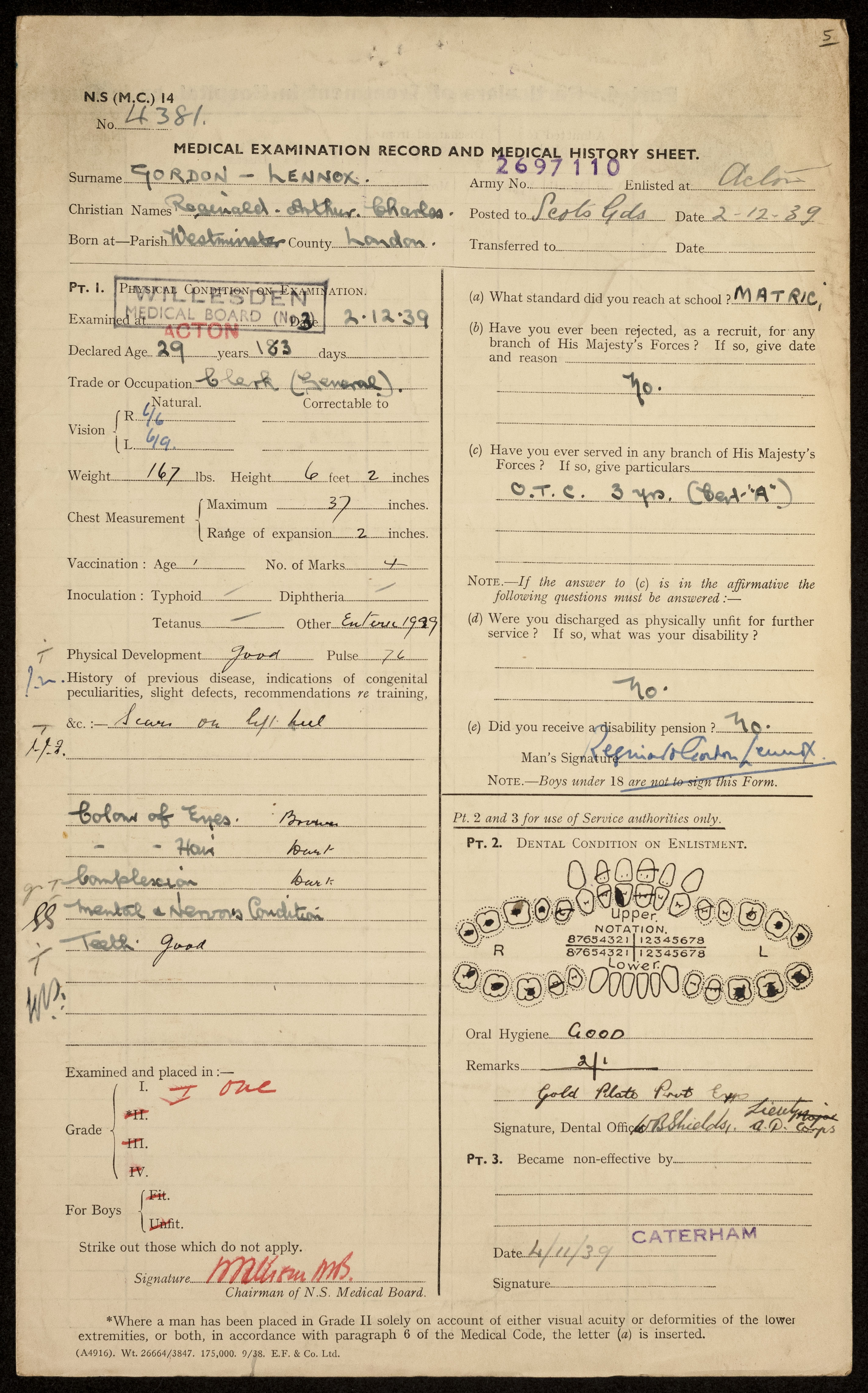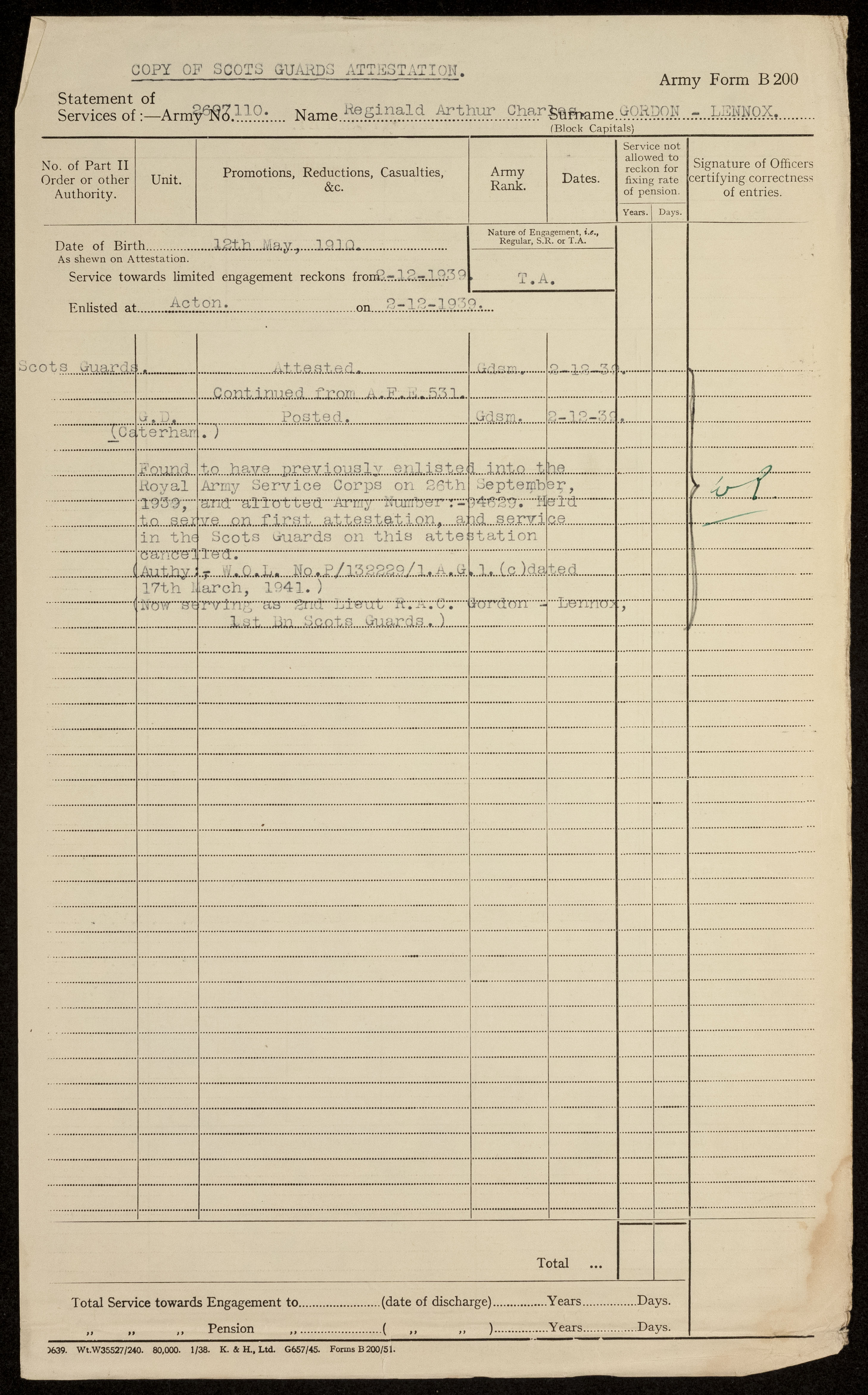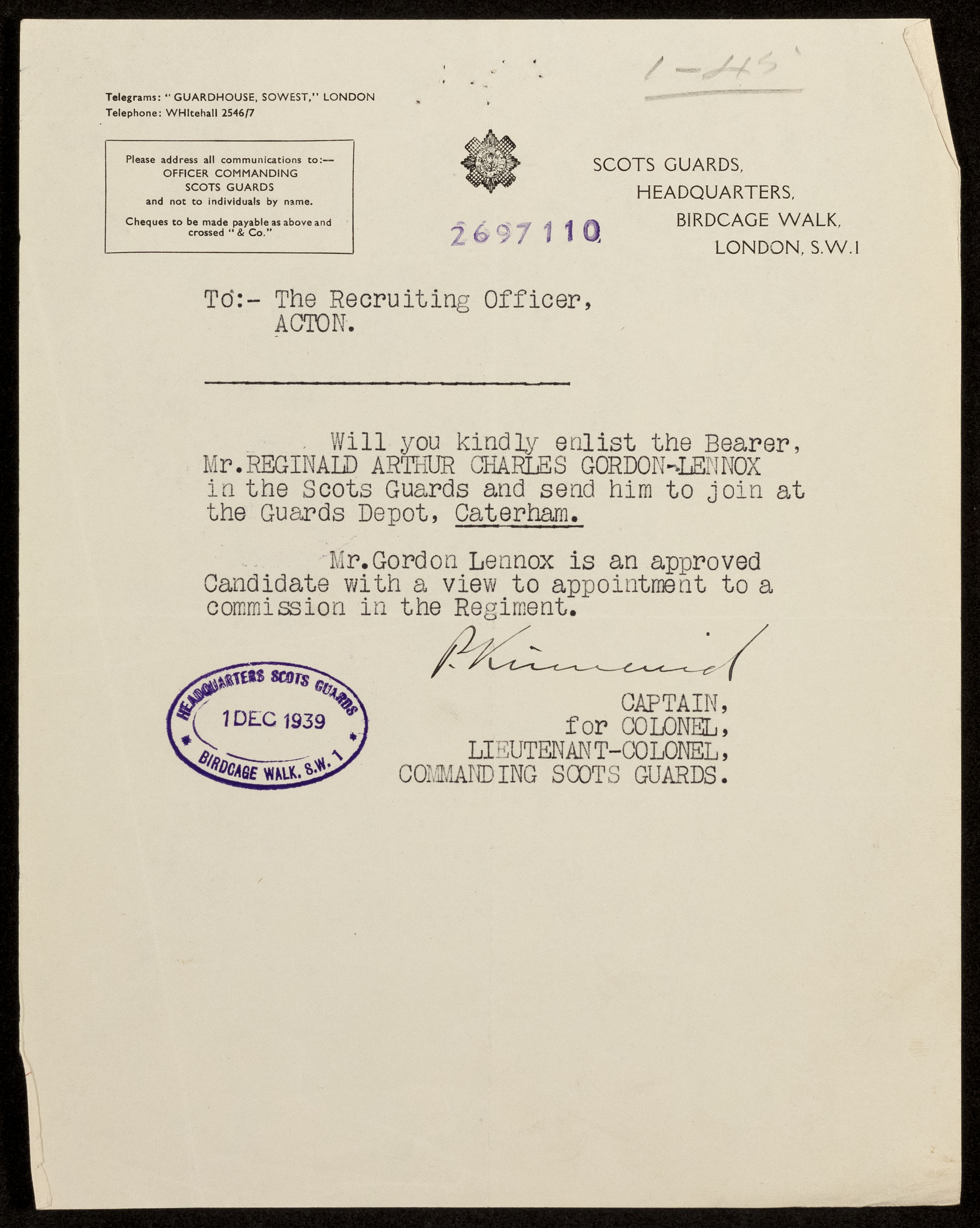 Reginald Arthur Gordon-Lennox was born in Kensington. He was the son of Brigadier-General Lord Esme Charles Gordon-Lennox and Hon. Hermione Frances Caroline Fellowes. Captain Gordon-Lennox's grandmother was a Spencer - Churchill, and his grandfather was the 7th Duke of Richmond, the family that own Goodwood.