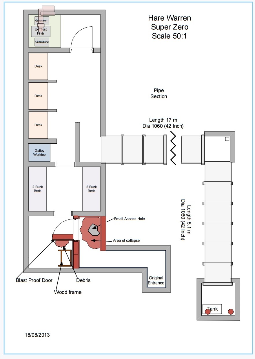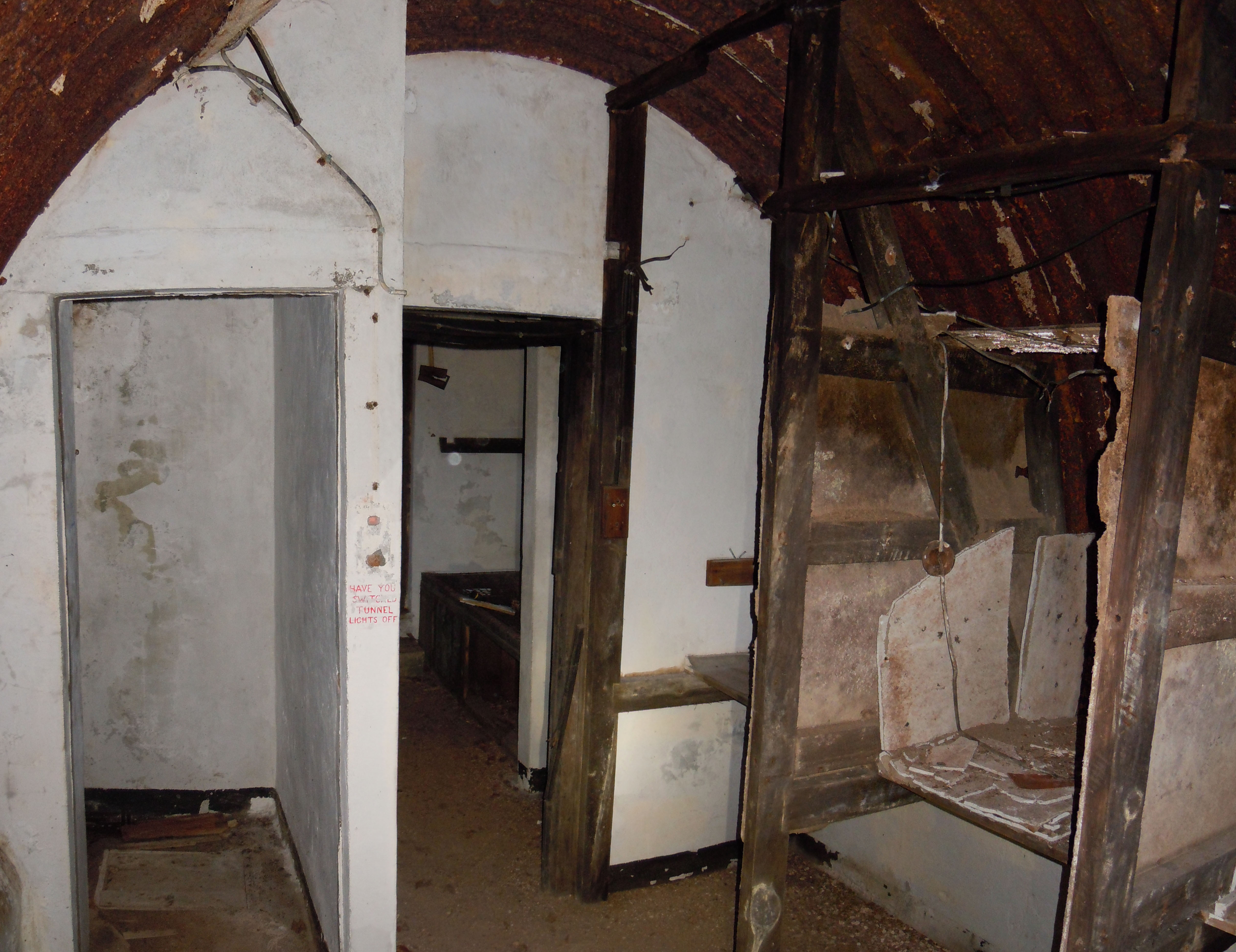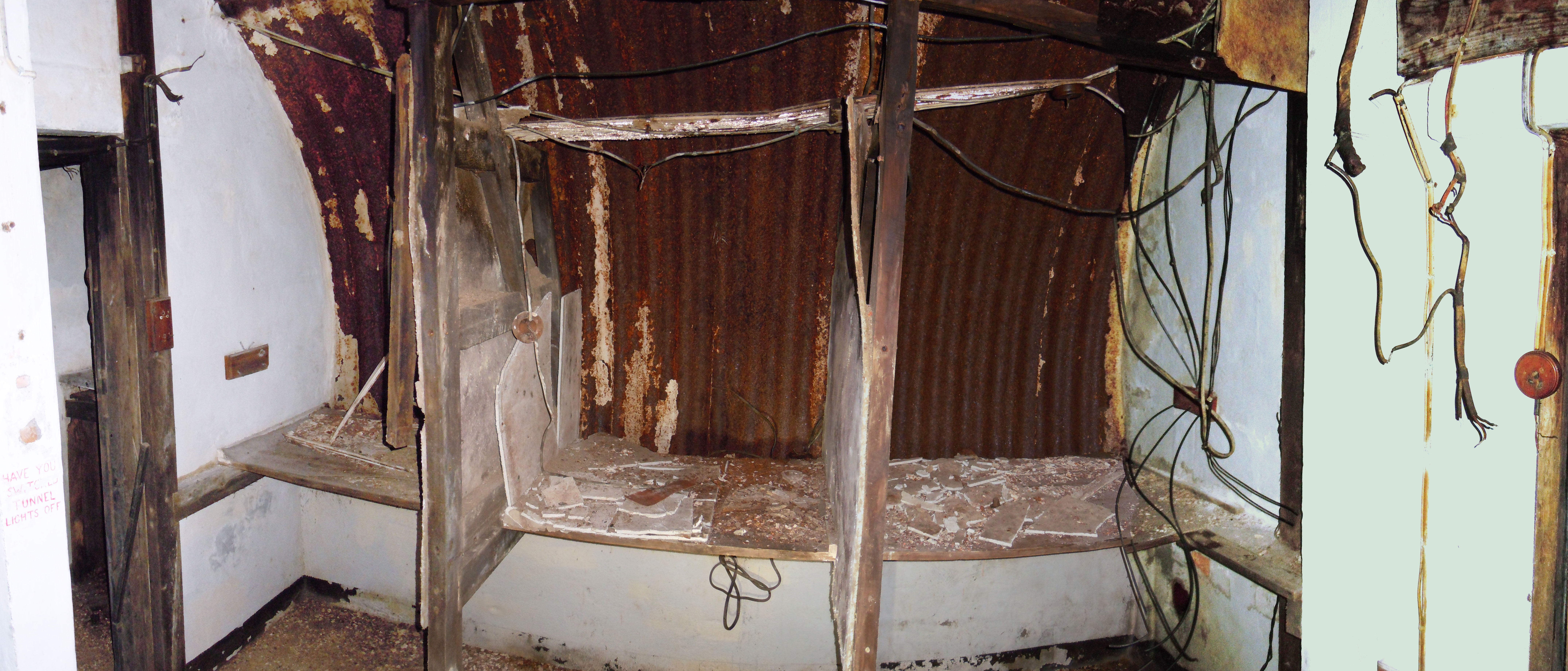 There was a store room, sleeping area and operational area with three wireless stations. There was also a generator room and long escape tunnel made from concrete sewer pipes. Signalman Bert Davis recalled bitterly the installation of the lighting in the escape tunnel as he had to drive rawlplugs into the concrete pipes with just a hammer and bradawl. When he arrived it was lit by torches and hurricane lamps.