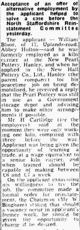 William Bloor was born in Tunstall, Staffordshire to Albert Bloor. On 13 May 1944 he married Mabel W Flitton of Stanton Fitzwarren, two miles south west of Highworth. In 1939 she was living at School House in the village with her parents and working at an assistant in the Toy Department of Woolworths in Swindon. She was living at the same address in on 10 Jul 1941 when, while cycling home from Swindon, she witnessed a fatal crash. Four soldiers were walking towards Highworth from Stratton and a motorcycle overtook them, colliding with a van travelling the opposite way. Sadly a soldier riding pillion on the motorcycle, Bernard William Nutting, of 47 Light AA Regiment was killed.