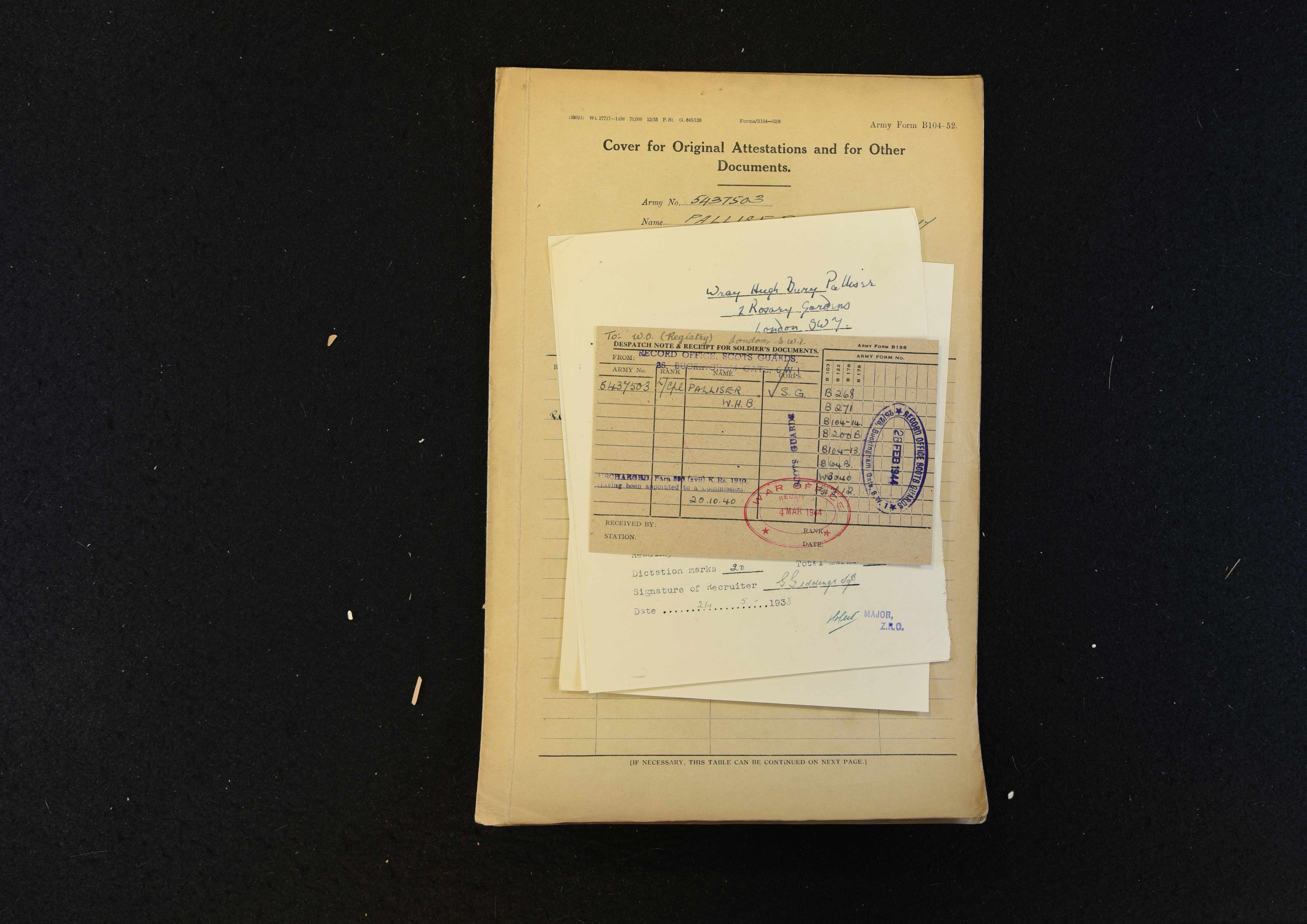17 Feb 1940 Transferred from 2nd Battalion Duke of Cornwall's Light Infantry to 5th Battalion Scots Guards